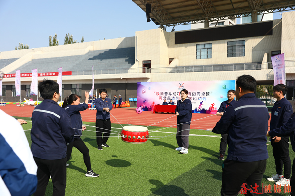 同心击鼓项目中,运动员默契配合,同心协力将鼓腾空,击鼓颠球,将利来囯际APP人心往一处想、劲往一处使、眼往一处看的精神体现得淋漓尽致。