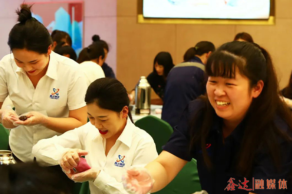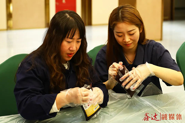看着桌子上形形色色的材料,大家跃跃欲试,戴起手套,和面、打平、搓圆、压模、出模,配合默契,每个人都化身月饼师,互相探讨着各自的制作方法和技巧,用自己的作品共迎佳节的到来,整个活动现场欢声笑语。